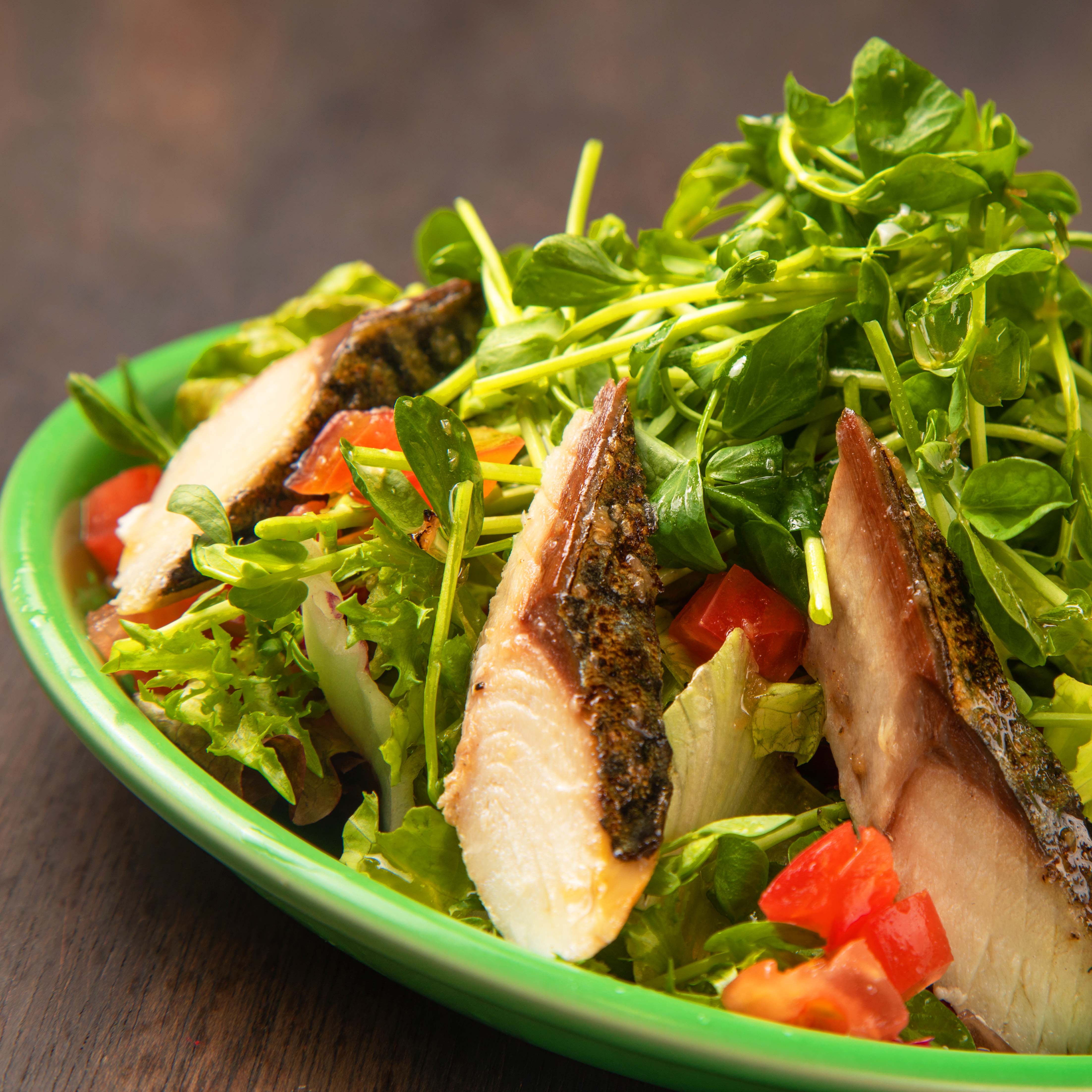 サバと豆苗のアンチョビドレサラダ