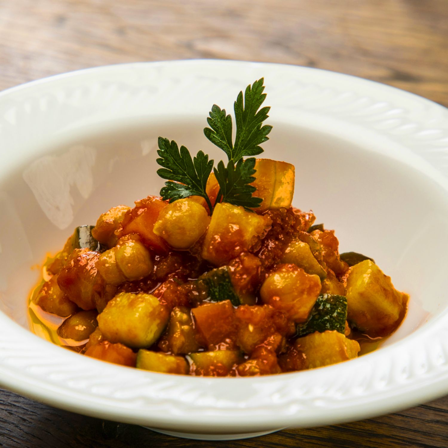 香味野菜と炒め合わせたひき肉とトマトをじっくりと煮込んだソースは当店自慢の自家製ソース
