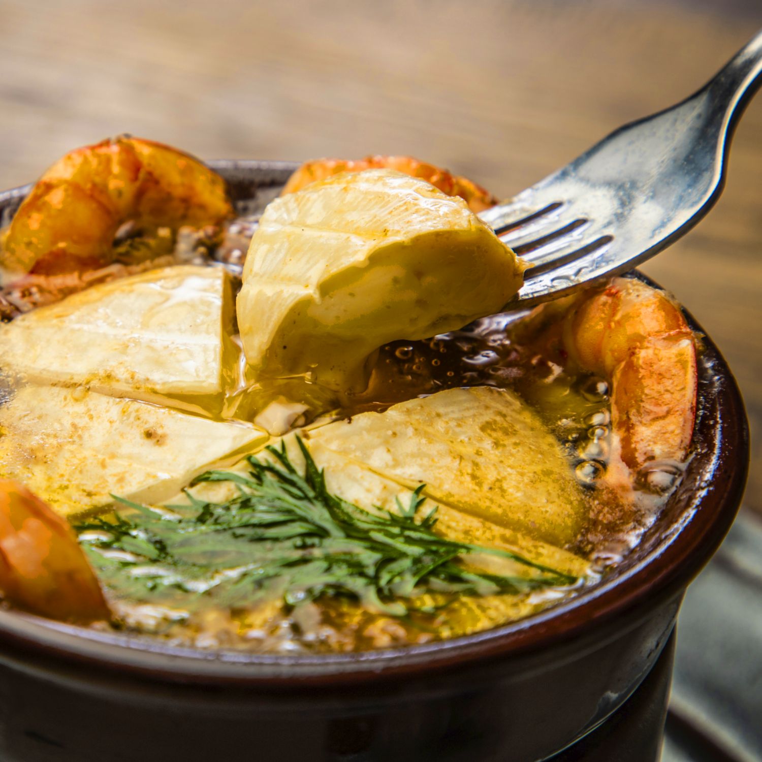 カマンベールチーズと海老のアヒージョ