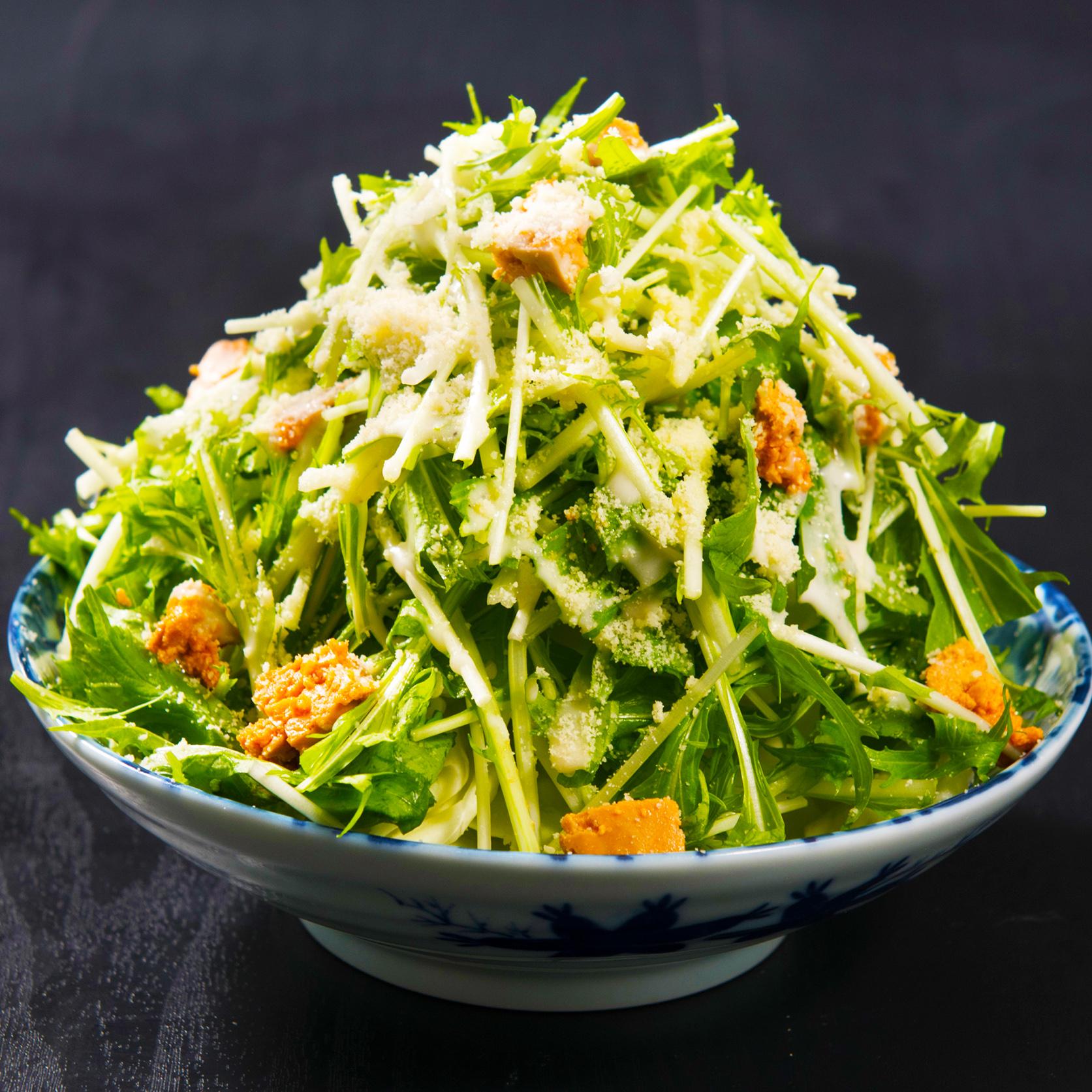 あん肝と水菜のシーザーサラダ