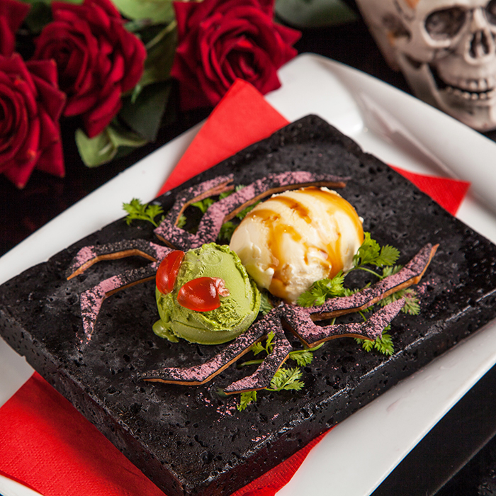 ドラキュラ伝説が今はじまる…デザイナー鈴木克典氏が手掛けた、怪しく非日常的な空間。 ドラキュラ伯爵が眠る棺やコウモリが飛び交う怪しいシャンデリアなど、おどろおどろしい雰囲気が漂う店内で、イタリアンフレンチをベースにヴァンパイア風にアレンジされた創作料理の数々やユニークなネーミングのオリジナルカクテルをお楽しみいただけます