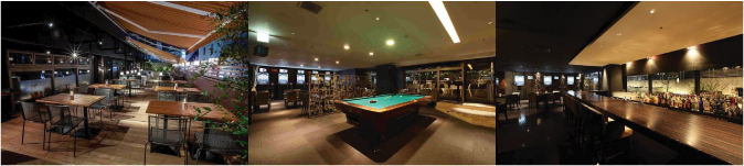赤坂見附駅から徒歩1分。ビリヤード、ダーツ、カラオケ、シミュレーションゴルフと2フロアのテラス席を完備したアミューズメント&シーズンダイニング。春には桜、秋は紅葉、冬はこたつと、シーズンごとに季節感を愉しめるテラス席が人気です。ルーフ付きなので天候を気にせずご利用可能。VIPテラス席はカラオケ&ダーツ個室が一緒にご利用いただける、当店自慢のプライベートスペースです。親しいお仲間だけでアミューズメントBBQはいかがでしょうか。テラスでお腹を満たした後は、ビリヤード、ダーツ、カラオケ、シミュレーションゴルフで二次会を。気の合う仲間と食べて飲んで語り合う、大切な時間を演出いたします。