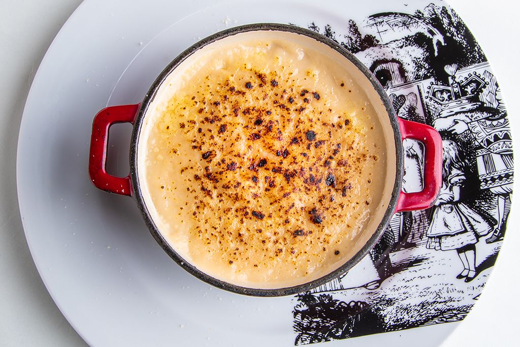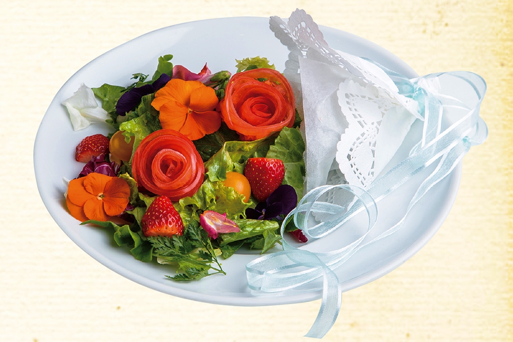 マッドハッターがアリスにそっと贈ったと噂される花束がモチーフの美しきサラダ。トマトやサーモンで形取られたバラがひときわ目を引くとともに、甘く酸っぱいいちごが思わぬアクセントとなって舌を驚かせる、新時代のサラダは、フレッシュなフランボワーズのドレッシングでさらに魅力を発揮します。