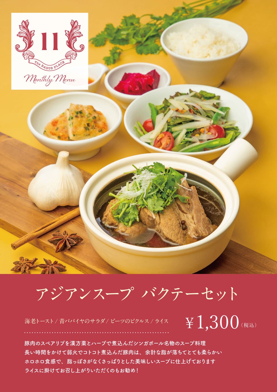 11月ランチメニューは滋養効果が期待できる『アジアンスープ バクテーセット』が登場!