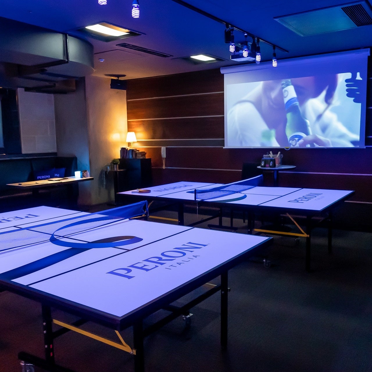 10月より「バネバグース宮益坂店」はプレミアムイタリアンビール『ペロー二 ナストロアズーロ』の旗艦店として期間限定でコラボレーションいたします。『ナストロアズーロ』とはイタリア語で『青いリボン』という意味ですが、期間中店内は爽やかな風にのって青いリボンが舞うイメージに包まれ、『ペローニ ナストロアズーロ』一色に。吹き抜けから見下ろすペローニ特設ビリヤードや筐体がペローニで統一されたダーツ機など、圧巻のロケーションが体験いただけます。