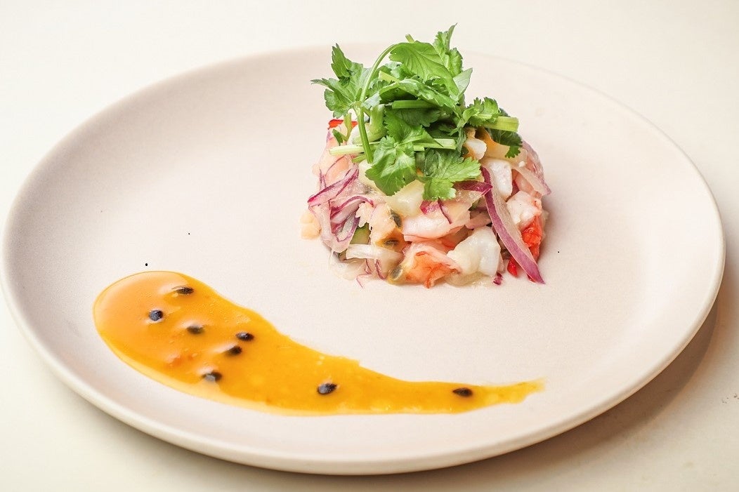 焼き霜の技法で軽く炙った真鱈と肉厚な北海蛸を、柚子胡椒ポン酢で漬けた爽やかな味わいのセビーチェ。素材本来の旨みと食感をお楽しみいただけます。