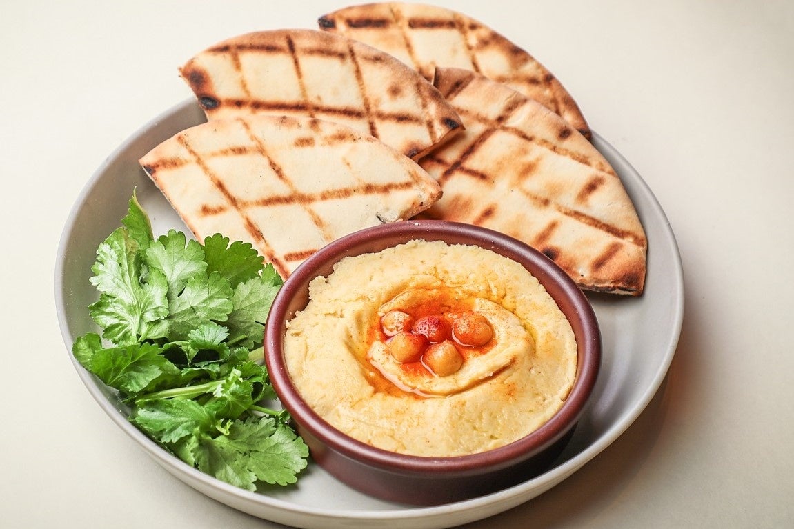 ペーストしたひよこ豆に青森産にんにく、オリーブオイル、レモン汁を加え風味豊かに仕上げたディップをピタで食べるイスラム地方の伝統料理フムス。ベジタリアンにもお勧めの一品です。