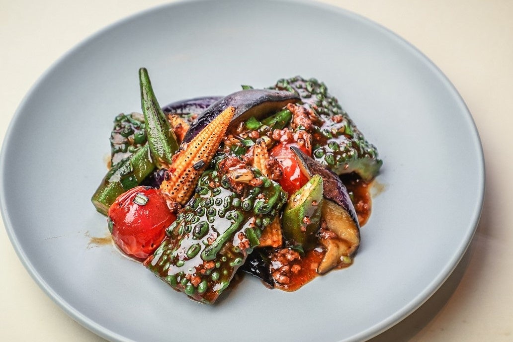 初夏に旬を迎える夏野菜を風味豊かな花山椒と豆鼓で香ばしく炒めた四川ソース煮込み。ピリッと来る刺激的な味わいはビールやハイボールとの相性も抜群です。