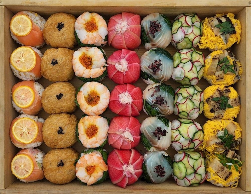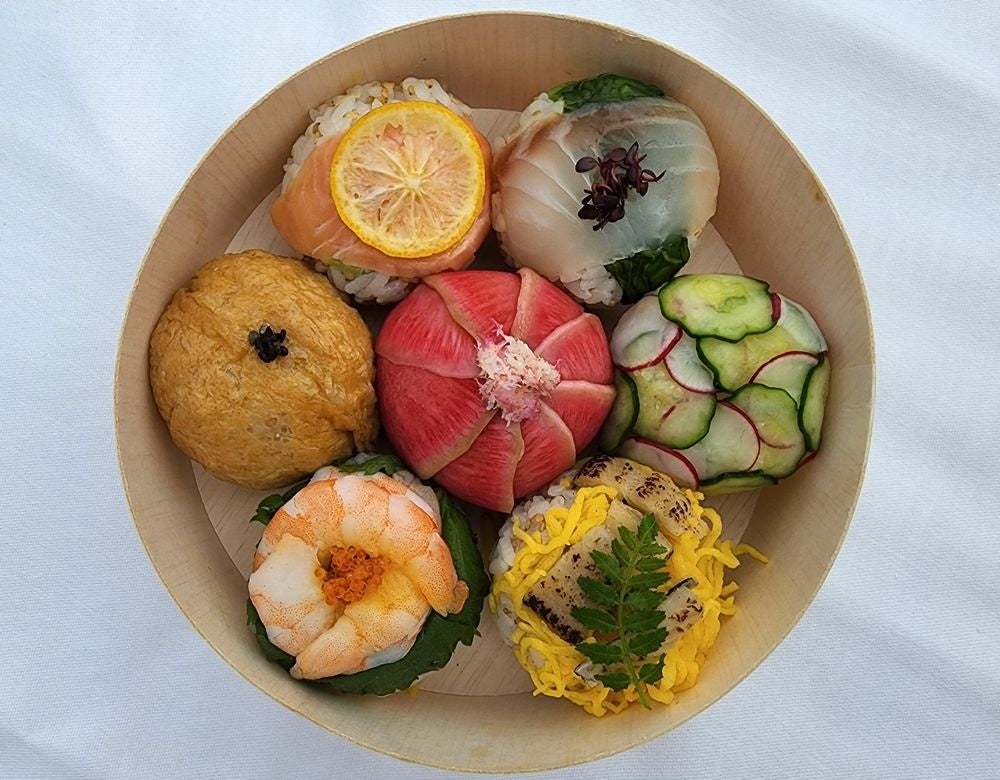 今回全面リニューアルしご用意させてただいたメニューは、見た目も可愛いらしく、しかも食べやすいサイズの「手毬寿司」。お客様のニーズにあわせて、お好きな場所で気軽にお召し上がりいただきたいという想いで開発いたしました。
