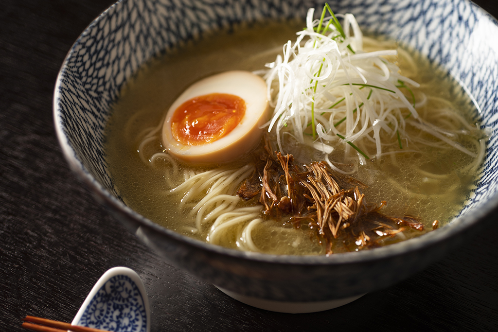 スープは、厳選した鶏ガラから抽出した濃厚で深いコクとまろやかな風味が魅力の「贅沢鶏白湯スープ」をベースに、➀あっさり塩味 ②香味醤油味 の2種類からお選びいただけます。