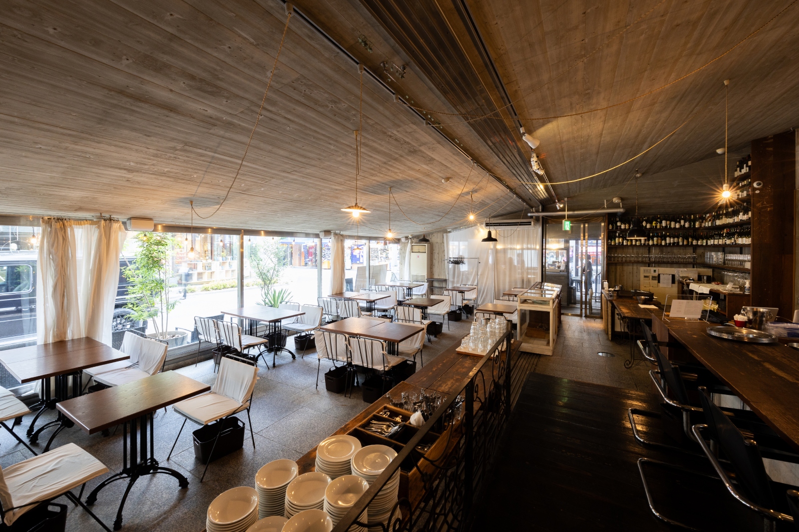 広島の中心部にありながら、このオープンで広々とした空間でビストロ料理と厳選されたお手軽ワインを楽しんでいただいております。